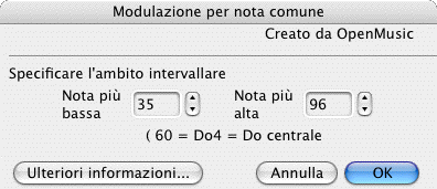 - Ulteriori informazioni · Annulla · OK. Cliccate su Informazioni per avere brevi cenni sull’utilizzo del plug-in. Cliccate su Annulla per tornare alla partitura senza aver effettuato alcun cambiamento, oppure cliccate su OK per effettuare le modifiche desiderate.