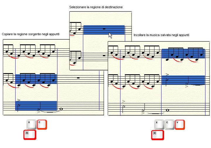 Utilizzare i file di appunti è un altro modo per copiare (o tagliare) e sostituire o inserire la musica. Questo è un metodo che si utilizza comunemente quando si deve copiare della musica per trasferirla da un documento ad un altro (si veda Copiare la musica da un documento ad un altro).