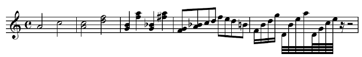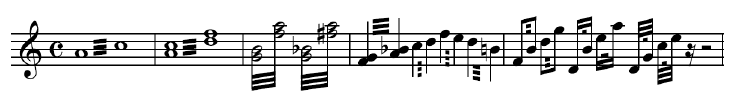 Questo plug-in vi consente di creare facilmente i tremoli sia come visualizzazione che in riproduzione. Prima inserite le note senza tremolo, in modo da riempire la misura. Il plug-in Inserimento tremoli converte ogni coppia di figure di eguale durata in tremolo. Le durate delle note del tremolo vengono raddoppiate: