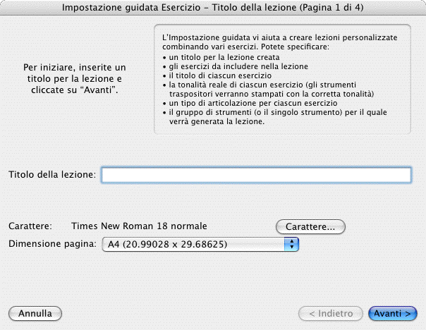 - Indietro · Avanti · Annulla. Cliccate su Indietro per tornare alla prima pagina dell’Impostazione guidata Esercizio. Cliccate su Annulla per uscire dall’Impostazione guidata Esercizio e tornare a Finale. Cliccate su Avanti per accedere alla finestra di dialogo della pagina successiva.