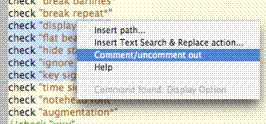 Nello sviluppare gli script è necessario avere rapido accesso ad una libreria estesa di tutti i comandi di FinaleScript. Proprio per questo motivo, FinaleScript consente l'accesso ad un vero e proprio dizionario contenente un elenco dei comandi attraverso un meno contestuale disponibile nella finestra di dialogo FinaleScript Editor. Se non siete sicuri della corretta terminologia e sintassi da utilizzare, fate click,