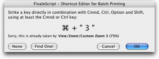 Notate che la combinazione delle scorciatoie da tastiera di FinaleScript e il comando "execute menu item" permettono qualsiasi rimappatura.