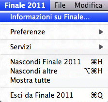- Informazioni su Finale. Questo comando fa apparire l’omonima finestra di dialogo nella quale vengono riportati nome e numero di serie dell’utente, dati indispensabili per poter contattare il servizio di assistenza tecnica.