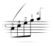 I numeri aggiunti ad una parte per indicare la diteggiatura sono articolazioni; si veda Articolazioni per ulteriori indicazioni. Una nota o un accordo possono avere tutte le articolazioni che desiderate. Il file predefinito di Finale è già dotato di segni di articolazione per la diteggiatura. Potete trovare e modificare questi segni (o aggiungerne di nuovi) nelle librerie di Finale. Per maggiori informazioni, si veda Librerie di Finale per ulteriori informazioni.