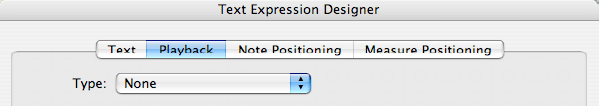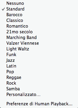 Questa impostazione è necessaria soltanto per le espressioni come “pizz,” “arco,” ecc. che Human Playback utilizza come keyswitch durtante il playback con la GPO. Le altre espressioni, come le indicazioni di dinamica, di tempo e così via., non utilizzano keyswitch e, di conseguenza non è necessario che selezionate l’opzione Nessuno nel menu Tipo.