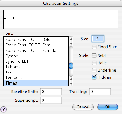 | mute on | 1 | espressioni: "mute", "mute on", "mutes", "con sord.", "con sordino", "sordino", "sordini", "sord.", "sourd.", "sourdine", "sourdines", "mit Dämpfer", "m. Dpf." "mit Dpf." | |