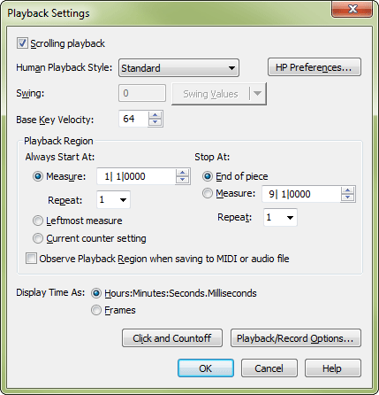 Se scegliete di operare in questo modo, dorete selezionare l'opzione "Non rendere casuale (Timing esatto)" nel pannello Variazioni di Tempo della finestra di dialogo Preferenze di Human Playback.