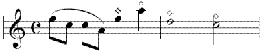 Gli armonici per gli strumenti a corda sono spesso notati come teste romboidali