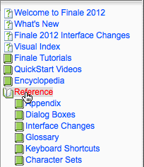 Note. Non dovete necessariamente essere online per utilizzare il Manuale dell'utente di Finale. Per utilizzare la versione installata sul vostro computer, dal menu