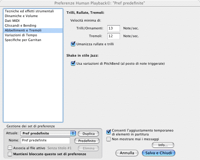 Sul pannello dei controlli per il playback. Quando il pannello si espande, cliccate su Preferenze HP, quindi, una volta aperta la finestra di dialogo Preferenze di Human Playback, selezionate la categoria Abbellimenti e tremoli.