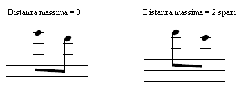 La massima distanza che un raggruppamento può avere a partire dalla linea centrale viene calcolata a partire dalla nota più distante dalla linea centrale medesima.
