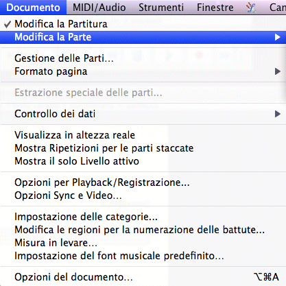 Il Menu Documento è uno dei Menu fissi di Finale.