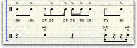 Scegliete questo comando per visualizzare in partitura il valore di nota MIDI di ogni nota delle percussioni.