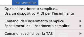 Questo menu vi permette di controllare il comportamento dello Strumento Inserimento semplice e di vedere in tempo reale le scorciatoie da tastiera disponibili per i comandi di navigazione e di inserimento.