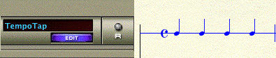 - Battete il tempo usando la barra spaziatrice o una nota della vostra periferica MIDI. Il cursore avanzerà alla velocità con la quale battete il tempo. Ciascun tap corrisponderà alla figura di durata corrispondente nel rigo per il Tap del Tempo, precedentemente impostata.