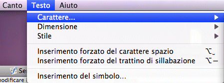 In questo menu sono anche contenuti i comandi per l'inserimento forzato di uno spazio o di un trattino di sillabazione, nel caso in cui non ricordiate le scorciatoie da tastiera per questi caratteri speciali (