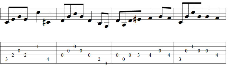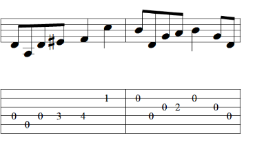Ci sono diversi modi per inserire la musica in un rigo per l'intavolatura. Inizieremo con il più semplice: copiare la musica da un rigo di notazione standard.
