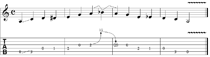 Ora riportiamo questo bending anche nel rigo in notazione standard.