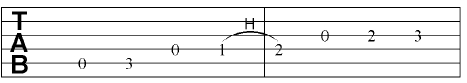 Hammer-on, pull-off ed altre indicazioni tipiche della notazione per chitarra