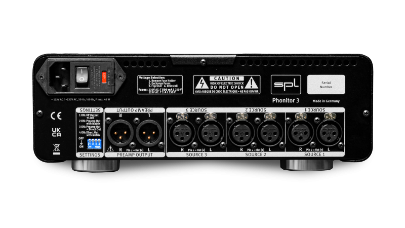 È possibile collegare fino a tre sorgenti stereo al Phonitor 3. La sorgente viene selezionata tramite l’interruttore Source.